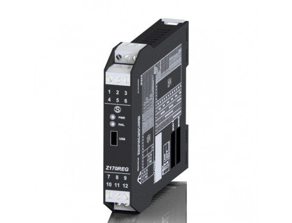 Z170REG-1 – универсальный повторитель аналоговых сигналов с функцией конвертора, вход которого может быть сконфигурирован на мA, В, PT100, Pt1000, Pt500, Ni100, TCs, Ohm, а два независимых выхода могут быть использованы в режиме mA или В.