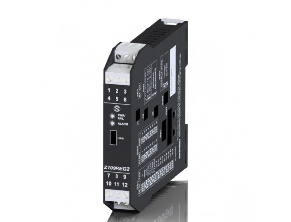 Z109REG2-1 – универсальный конвертор аналоговых сигналов с дополнительным релейным выходом, вход которого может быть сконфигурирован на мA, В, PT100, Pt1000, Pt500, Ni100, TCs, Ohm, а выход может быть использован в режиме mA или В.