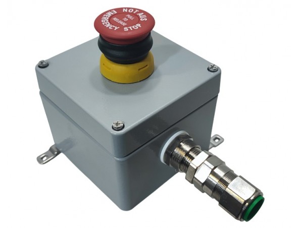 Изделие имеет маркировку взрывозащиты II 2G Ex db eb IIC T6 Gb, оснащен одной кнопкой "ГРИБ" и и кабельным вводом 20SE1FX1RA5 для бронированного кабеля